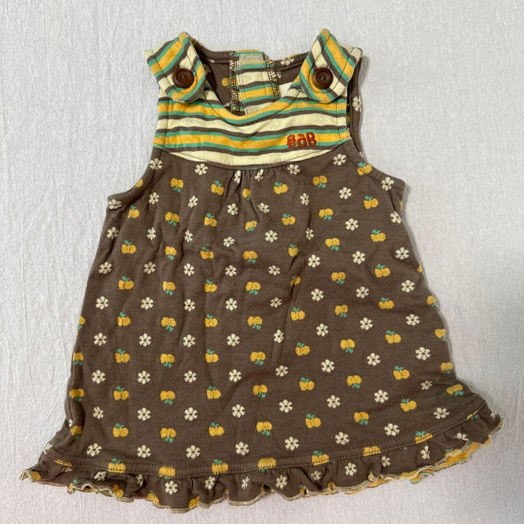 ブラウンの花柄ワンピースとショートパンツのセット。 - ブランド: eab - 色: ブラウン、ストライプ - デザイン: 花柄、フリル - サイズ: 70cm - セット内容: ワンピース、ショートパンツ ご覧いただきありがとうございます。