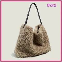 【新品】可愛い♡ ボア トートバッグ ベージュ マグネット開閉 ポケットあり a