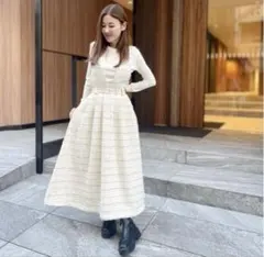 春 コーデ レディース ファッション オシャレ アイテム カワイイ コーデ シンプル きれい ナチュラル 上品カジュアル 用 オフ ホワイト ニット スカート春 ハイウエスト スリム カジュアル タッセル Aライン ロング丈