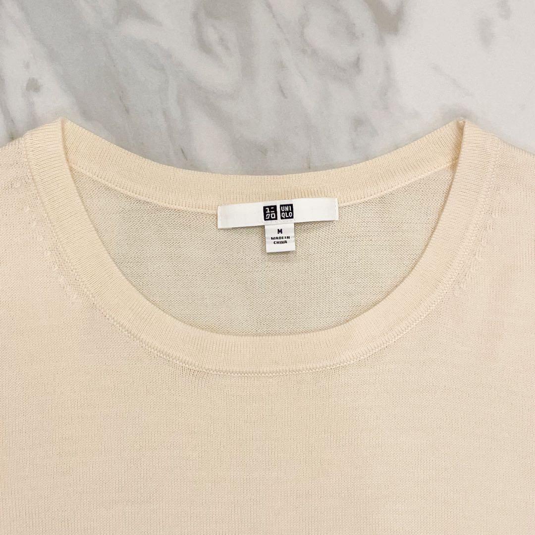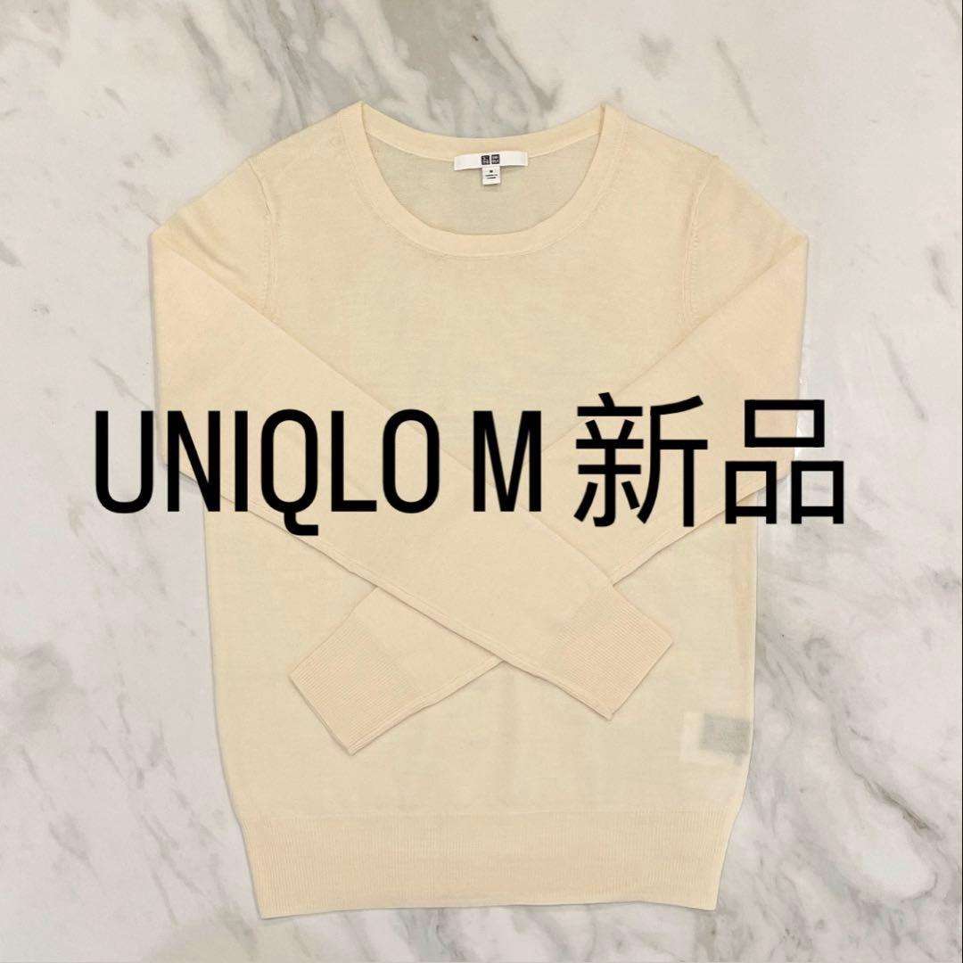 新品 ユニクロ エクストラファインメリノクルーネックセーター オフホワイト M白