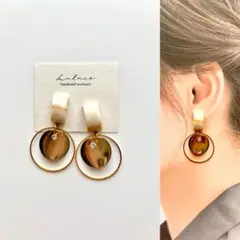 1462 マーブルスクエア*ラインストーン*ゴールドフープ×プレートピアス