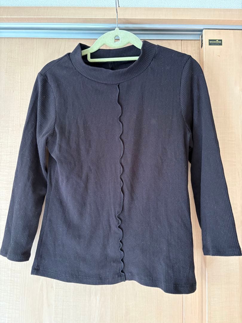 リブ編みの黒い長袖トップス、スカラップデザインが特徴。 - ブランド: Feroux - 色: 黒 - デザイン: リブ編み、スカラップデザイン - 袖の長さ: 長袖 気になる点などありましたら、気軽にコメントよろしくお願いします。 ご覧いただきありがとうございます。 肩幅/身幅/袖丈/着丈 肩幅···37cm 身幅···42cm 袖丈···46cm 着丈···50cm