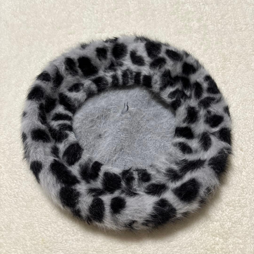 【美品】アンゴラ混 ベレー帽 ヒョウ柄