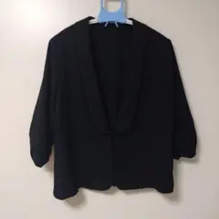 Allegra K ショート ジャケット クロップド ブレザー 前開き オフィス 事務服 無地 レディース ブラック 3XL