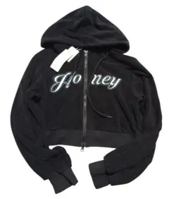 黒の「Honey」刺繍クロップドパーカー新品未使用タグ付きフリーサイズフード付き