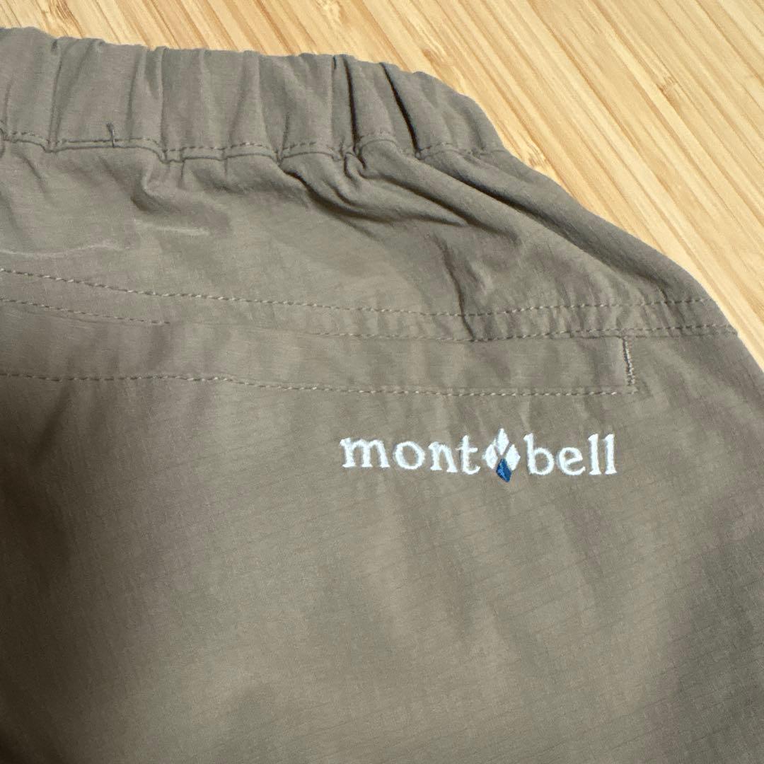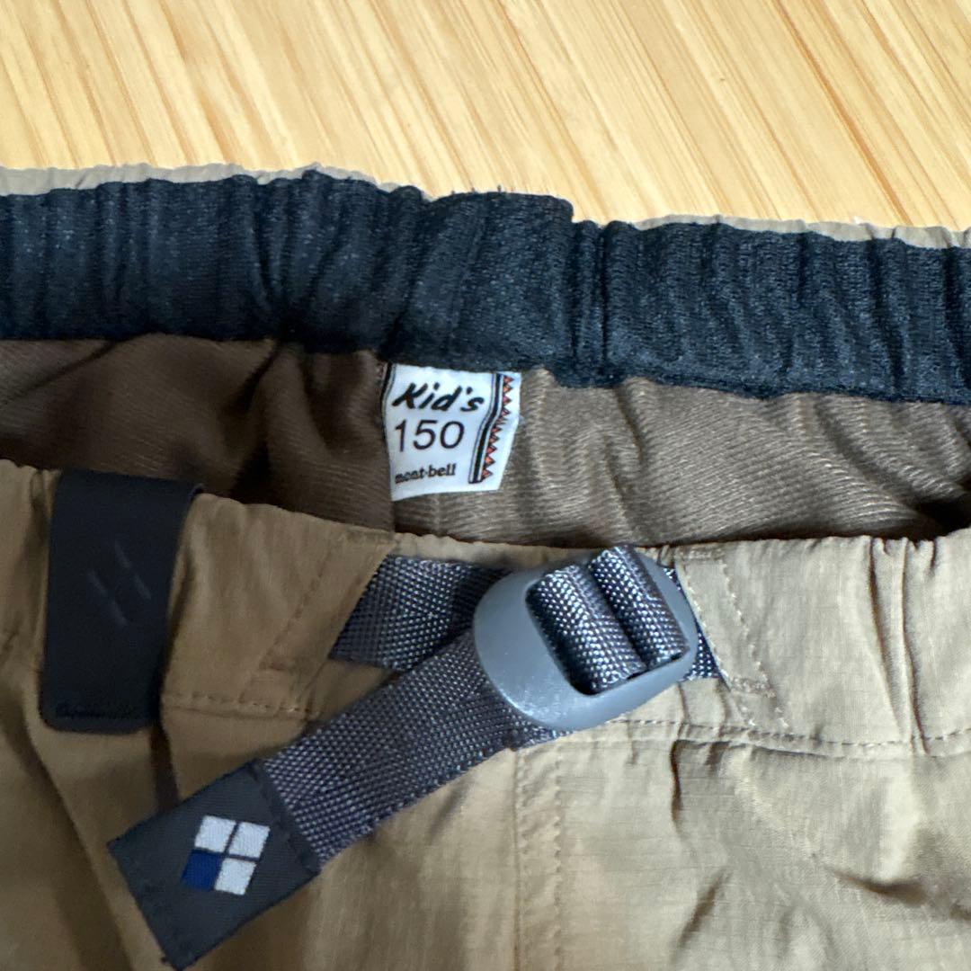 mont-bell製の150サイズのベージュの長ズボン、ポケット付きで厚手起毛裏地付きアウトドアに最適。