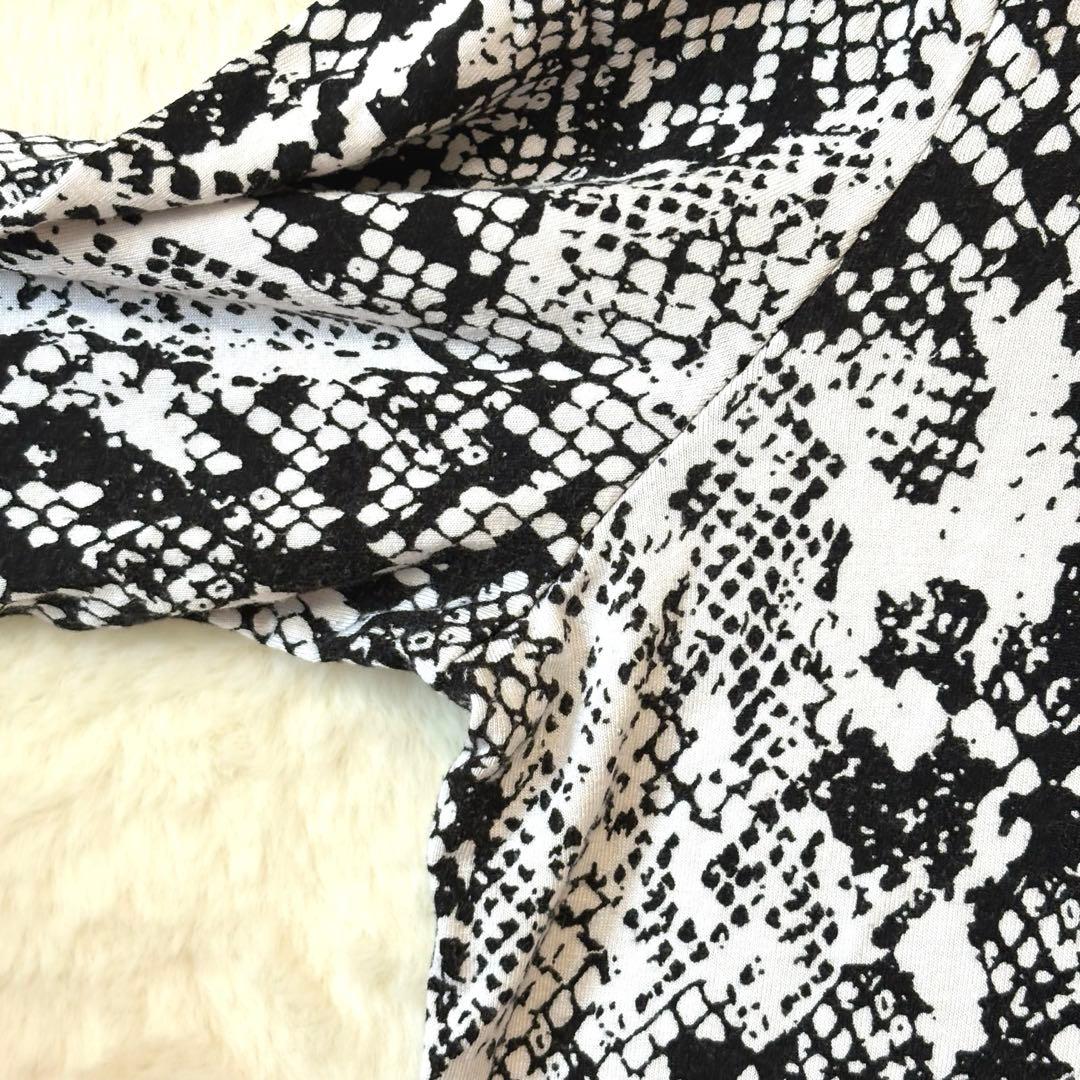 JM コレクション♦︎トップス カットソー 長袖 M 蛇柄 プリント 総柄 白