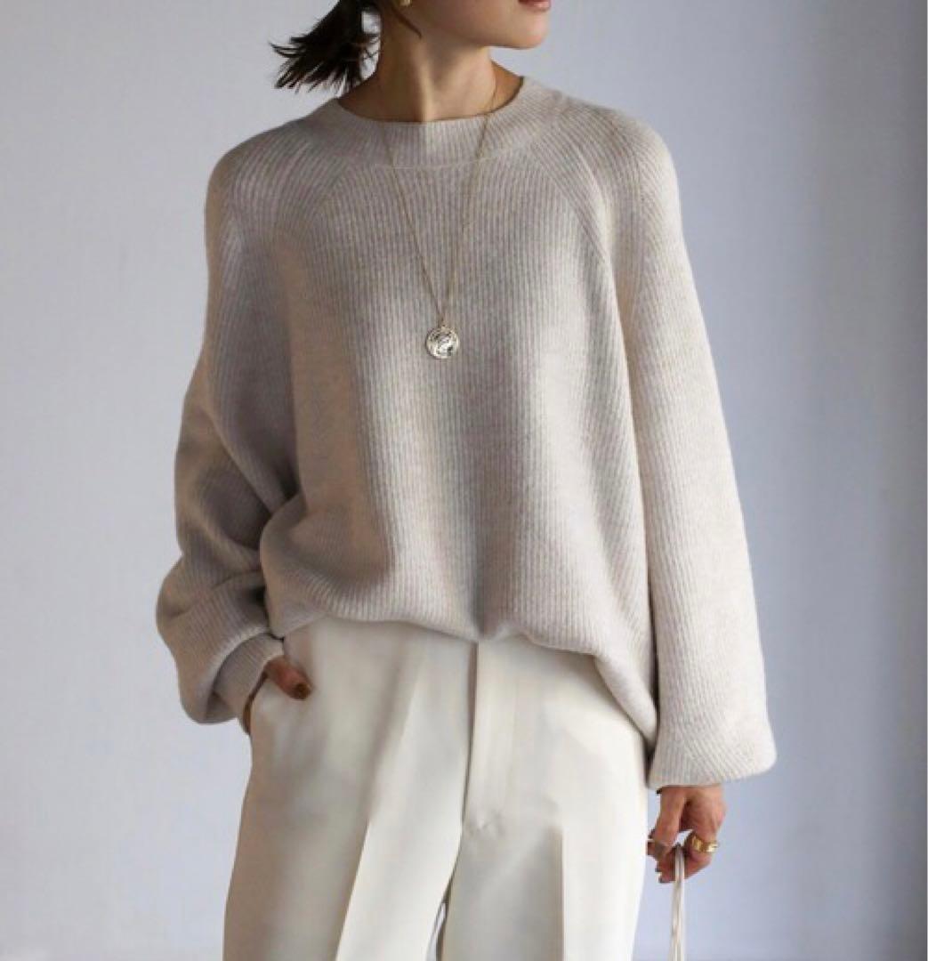 ふっくらとしたリブ編みのラグランニットプルオーバー