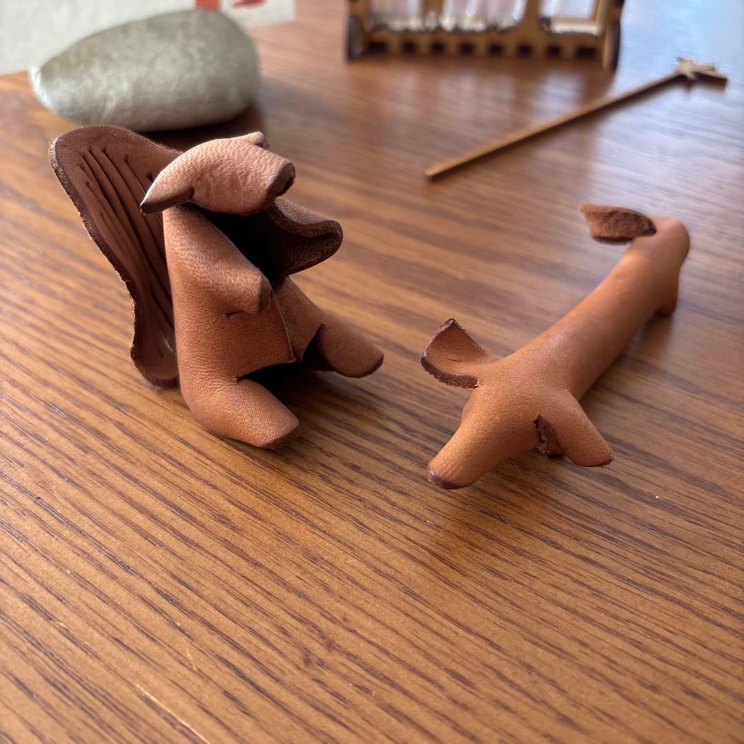 レザー製の動物モチーフのインテリア小物、手作り感が魅力。 - アイテムタイプ: インテリア小物 - 素材: レザー - デザイン: 動物モチーフ - サイズ: 約10cm(高さ) - 特徴: 手作り感のあるデザイン ご覧いただきありがとうございます。