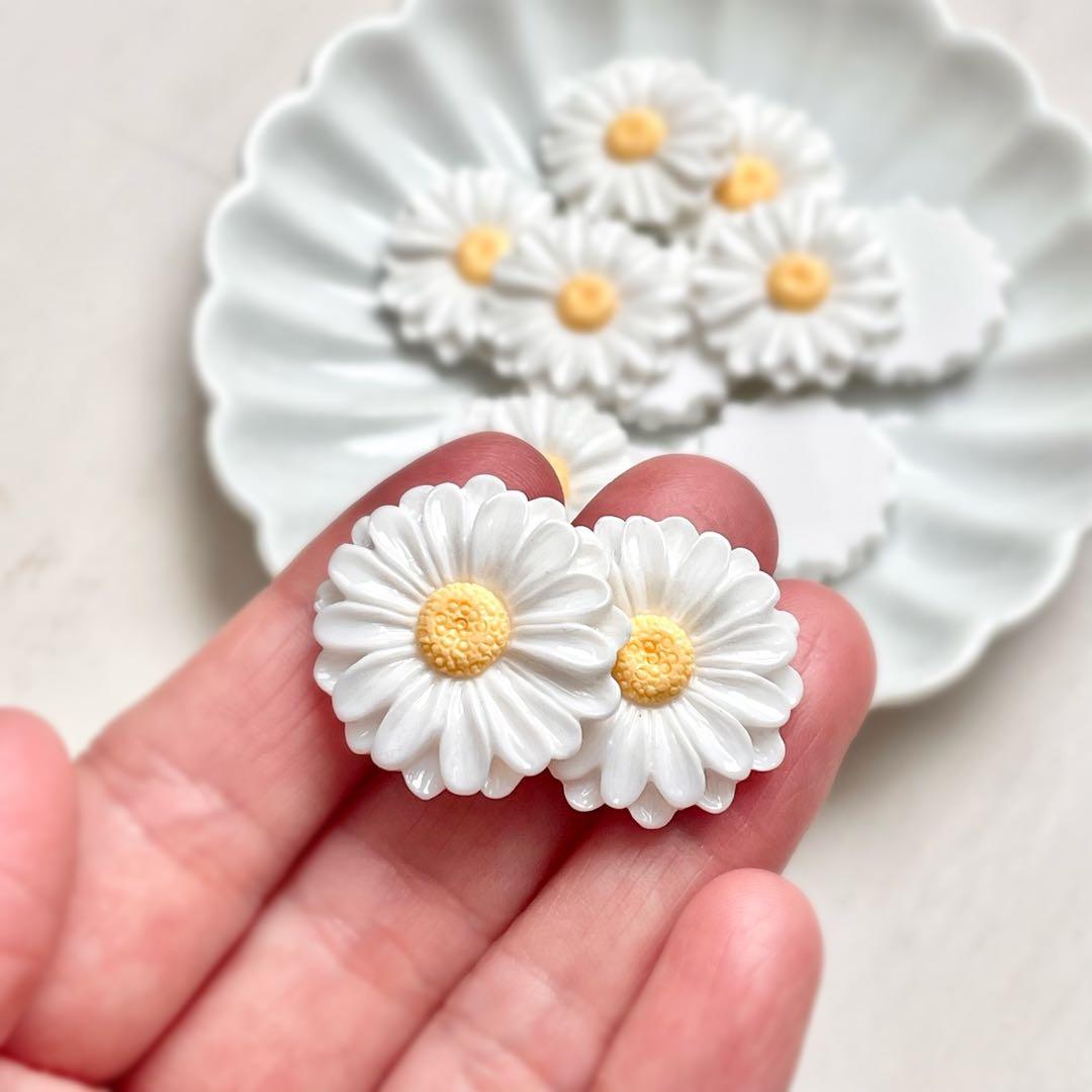 ♡no.1278マーガレットカボション♡白花フラワーヘアゴムクリスマス昭和レトロ