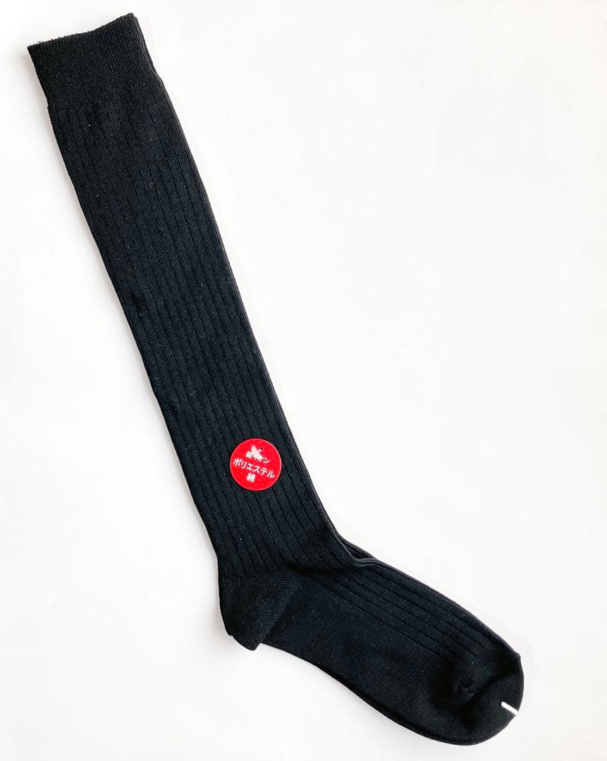 銀イオン ストライプ リブ ハイソックス ブラック 2足