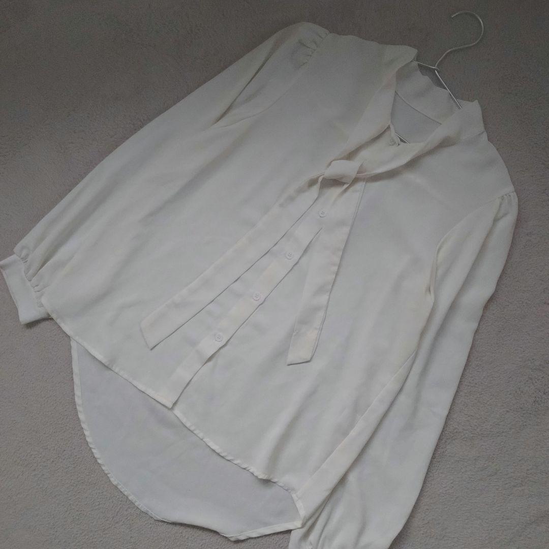 《pumpkin port》オフホワイト 長袖シャツ リボンタイ付き