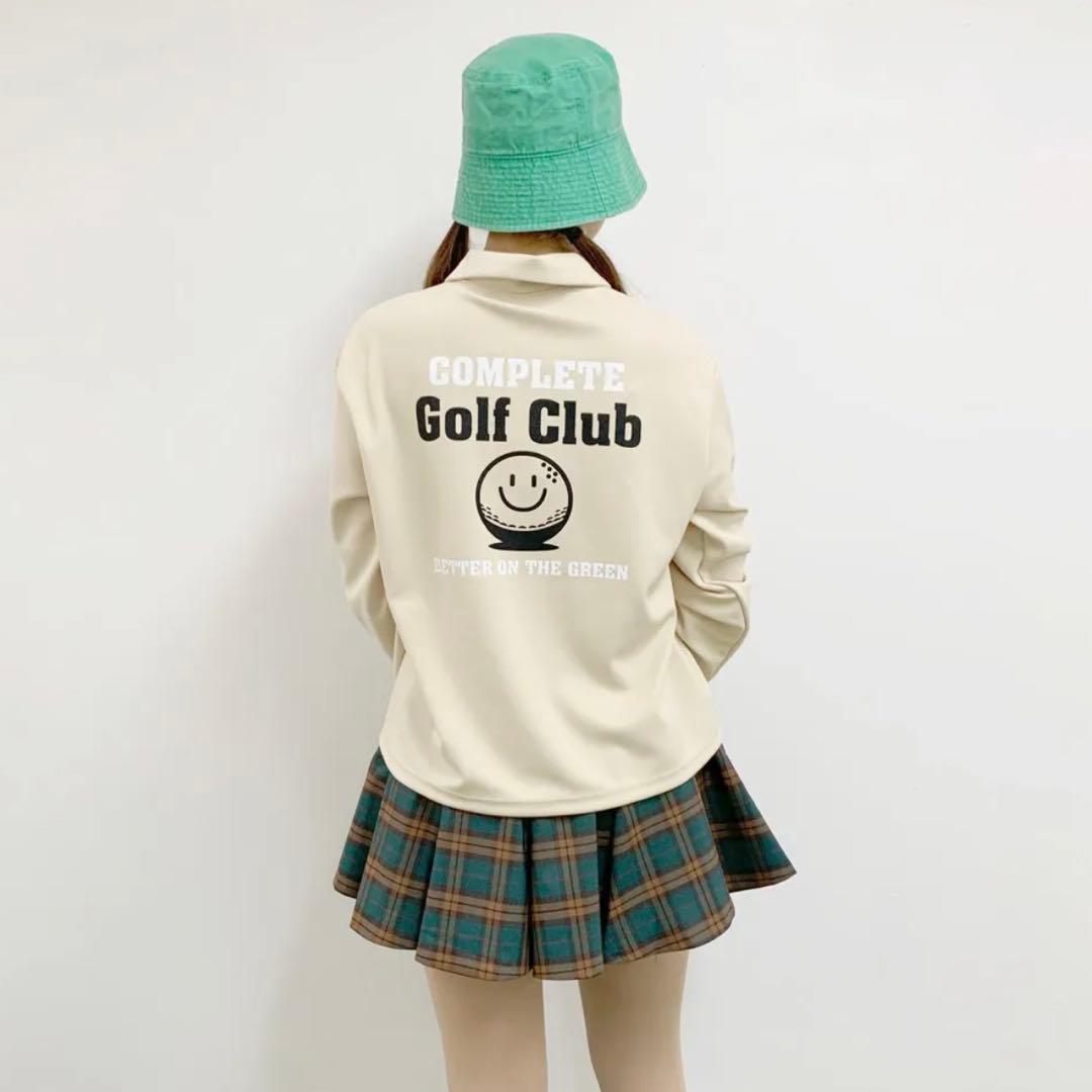 クリーム色のバックプリント付きゴルフウェア サイズFREE 肩幅49.5 バスト46.5 着丈57.4 袖丈57 定価¥6798 - 色: クリーム色 ベージュ - デザイン: バックプリントあり ※即購入可能ですが、購入の前にプロフィール文お読み頂くようお願い致します。