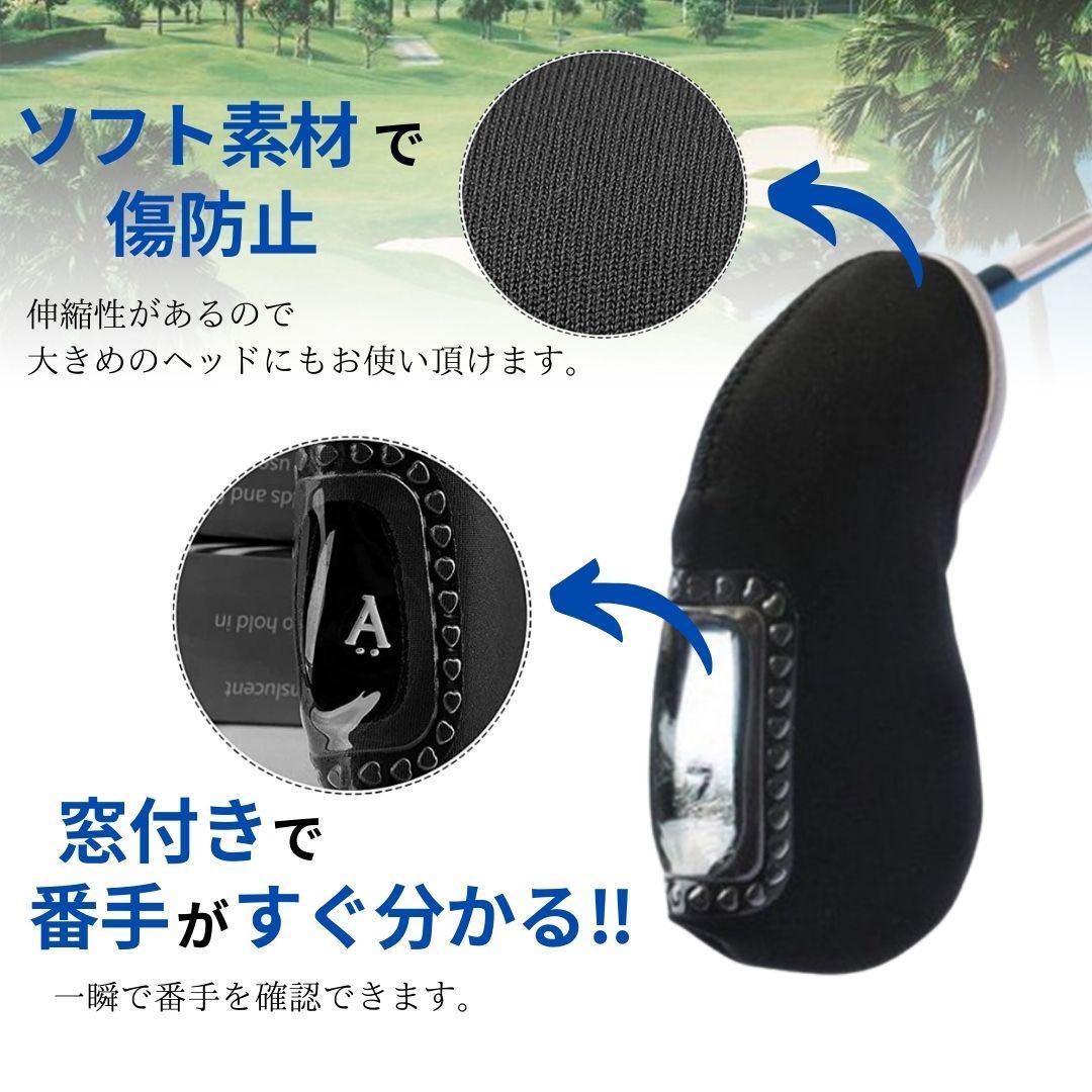 アイアンカバー ヘッドカバー ゴルフ 窓付き 10枚セット ブラック 黒 m8e