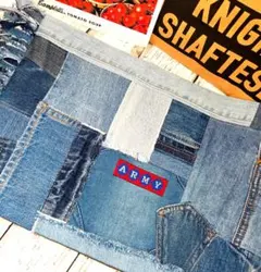 ハンドメイドのデニムリメイク1枚仕立てのエコティッシュカバーにタグ、ダメージ感ありです
