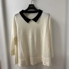 STAMP AND DIARY 衿付Aラインアイボリー ✖️ブラック襟 七分袖