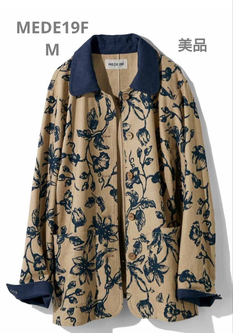 MEDE19Fの花柄ジャケット(ベージュ)です。 Mサイズです。 2度ほど短時間着用しましたがサイズが合わず、出品します。 定価¥10780 #フェリシモ