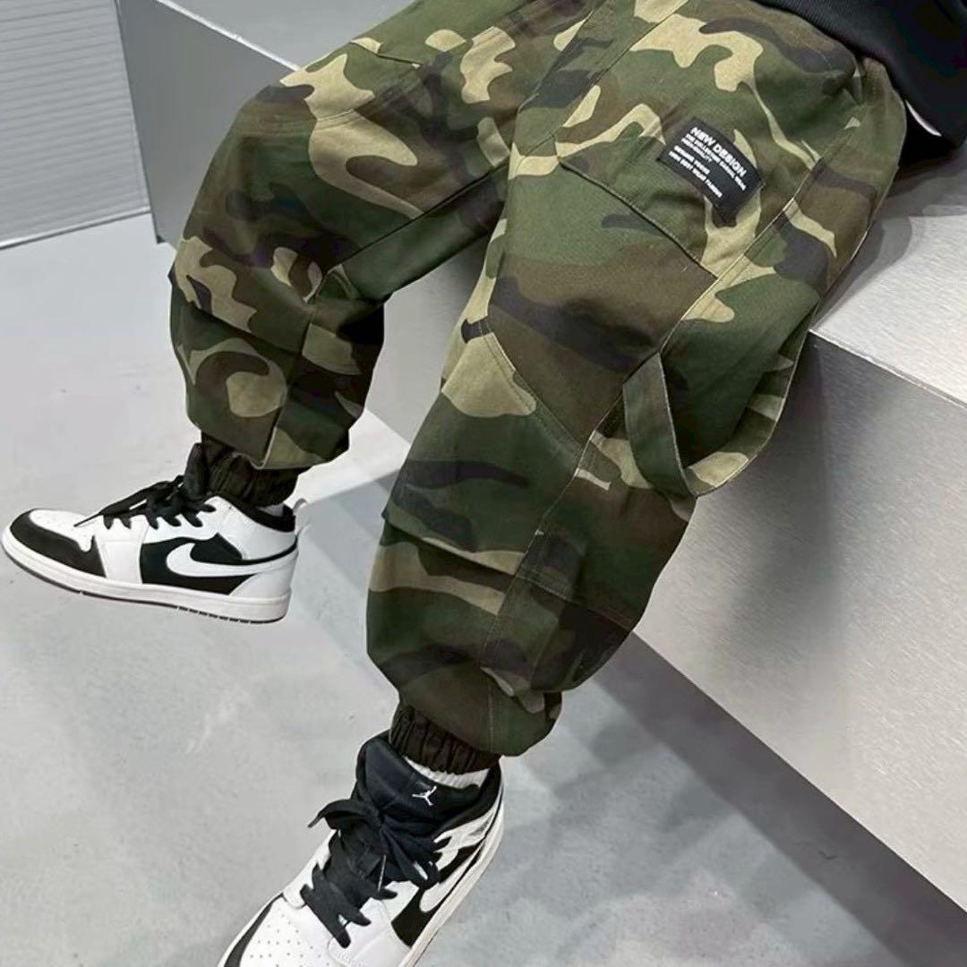 迷彩 カーゴパンツ 140 ストリート キッズ カモフラ グリーン ダンス 韓国