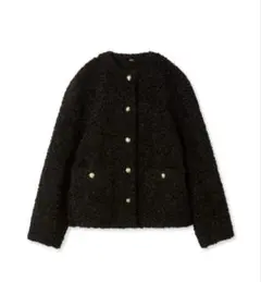 Mila Owen 金釦ノーカラーコンパクトボアジャケット ブラック