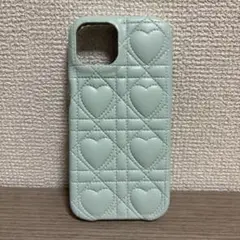 【新品】iPhone15ケース ハートキルティング レザー風 ミントグリーン