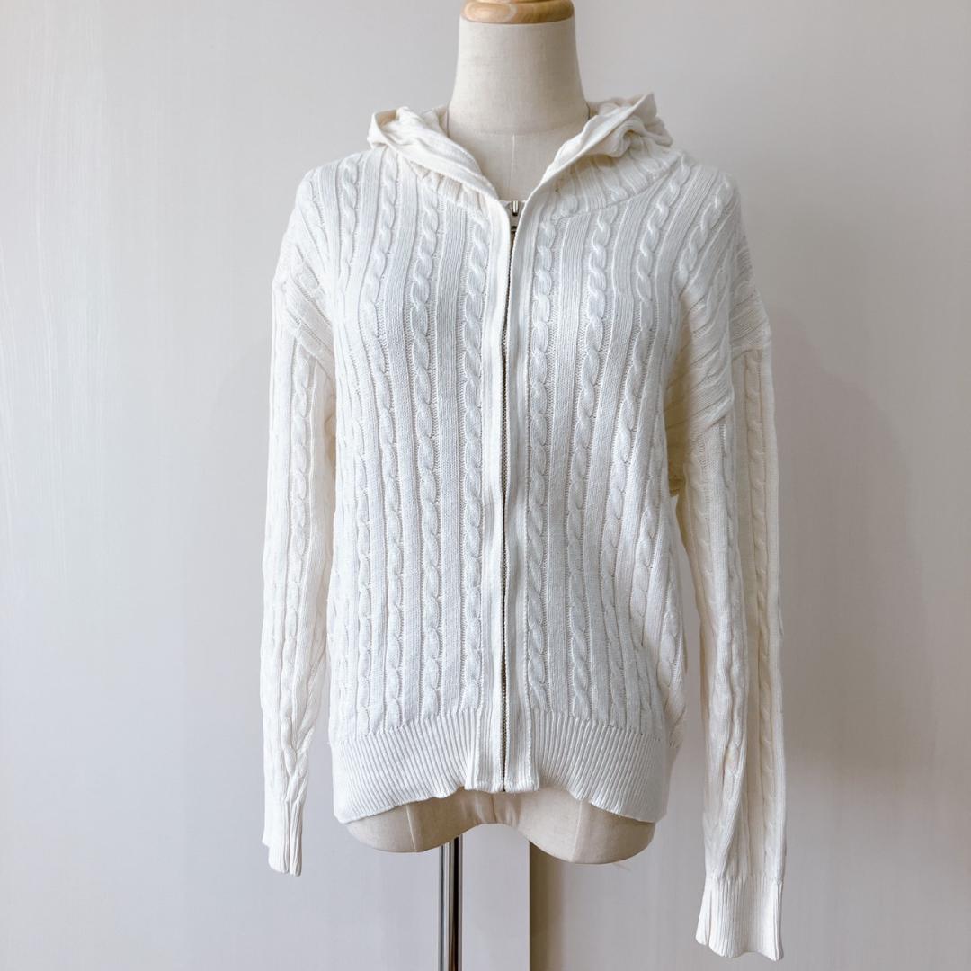 ルナー ケーブル編みジップアップコットンニットカーディガンホワイト日本製