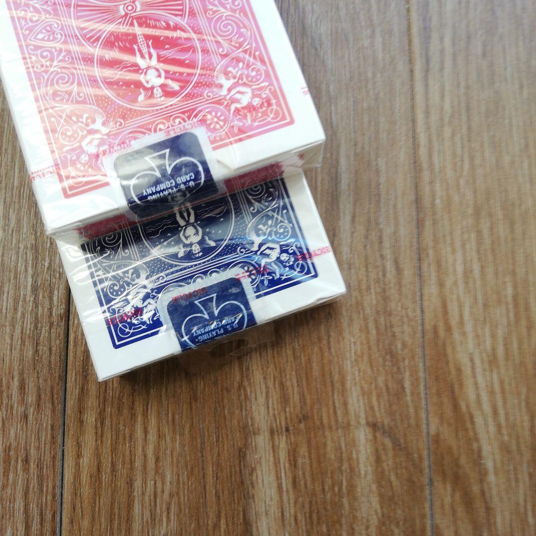 BICYCLEのRIDER BACKトランプ、青と赤のセットで、ポーカーサイズのカードです。 - ブランド: BICYCLE - モデル: RIDER BACK - 色: 青, 赤 - タイプ: トランプ - サイズ: ポーカーサイズ ご覧いただきありがとうございます。
