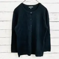 【INDIVI】カーディガン ウール100% シンプルデザイン 38 黒 M