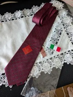 【新品】ジョバンニ・ バレンチノ ❣️ドット柄 ネクタイ❣️エンジ色❣️シルク