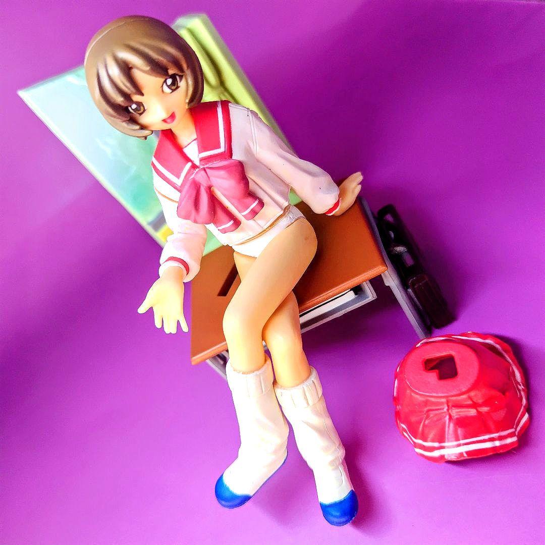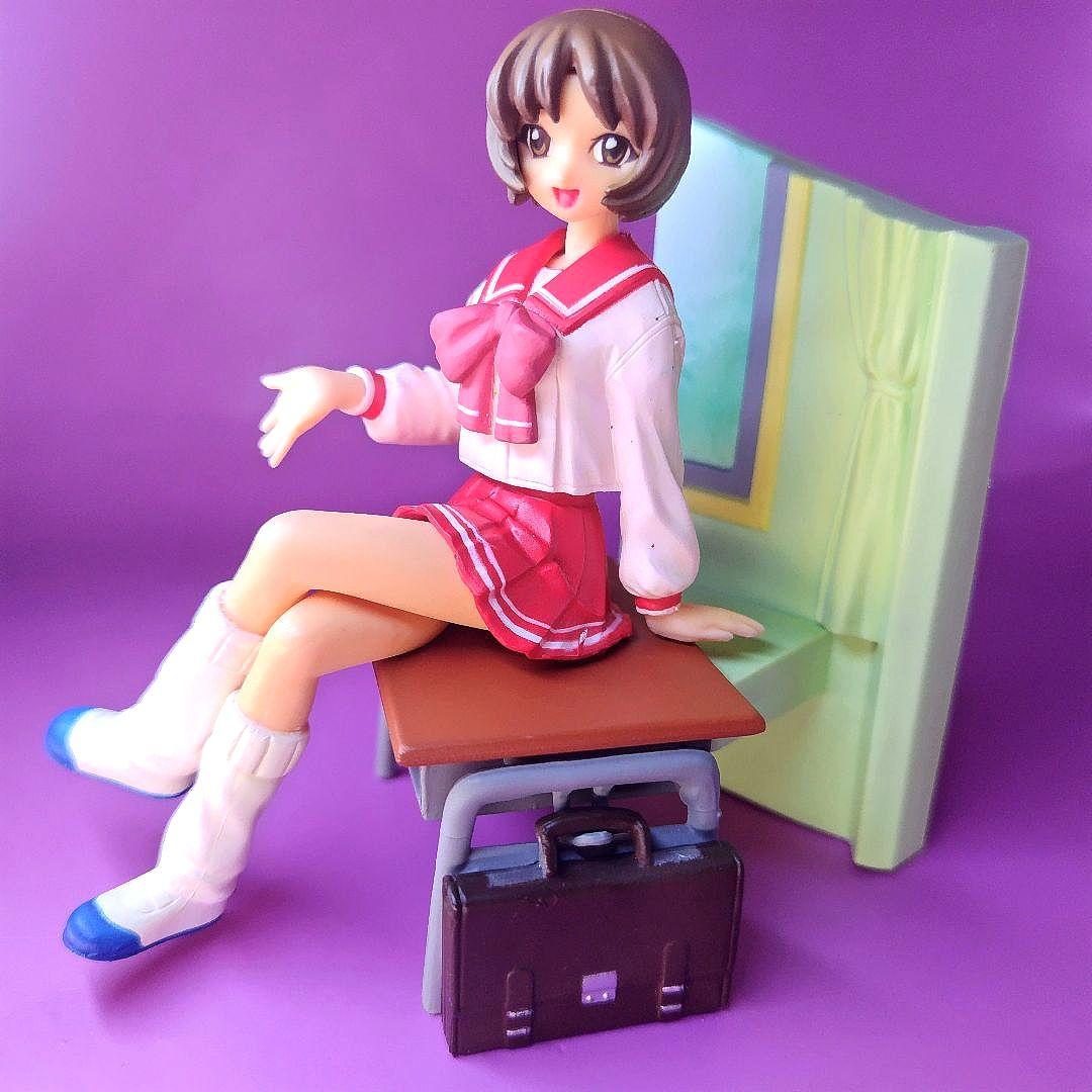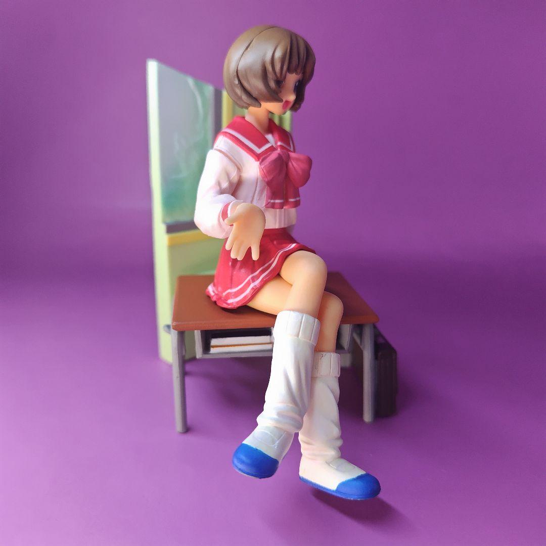 ひとりだけ豪華なジオラマ付きで 教室の窓辺で机に座って おしゃべり している長岡志保がフィギュアされています。