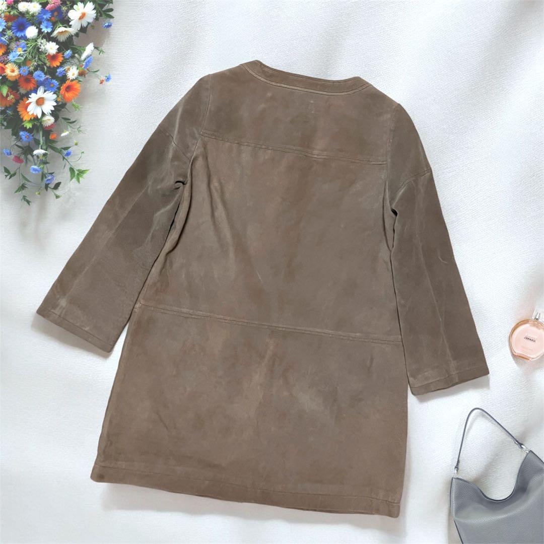 《simplicite》 ノーカラーレザージャケット ロング丈 ジップアップ