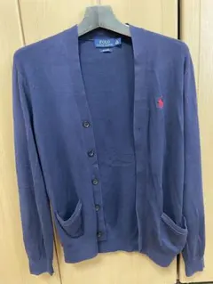 ネイビーのVネックアクリルカーディガン、100% Dupont Orlon製、ボタン付きでスタイリッシュ。