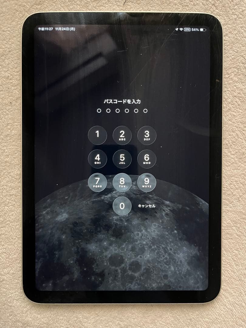 シルバーのiPad mini 第6世代 小傷あり バッテリー容量88% ストレージ容量256GB 機能不良···なし