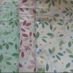 ①木葉×鳥 クリーム、ピンク、グリーン カラーボックスカーテン バラ売り可能