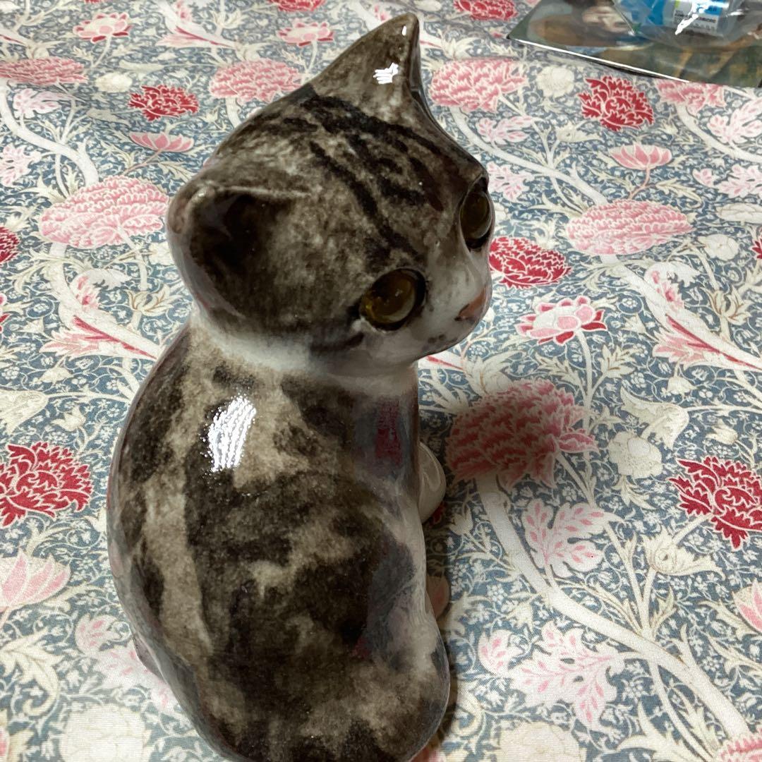 陶器製の猫の置物、可愛らしいデザインと黄色い目が特徴です。 イギリスのウィンスタンレイ女史の猫の粘土の置物です。 ヴィンテージ作品で非常に貴重なお品物です。 美人顔が特徴の瞳の綺麗なとても可愛い子です。 - デザイン: 猫の形状の置物 - 色: グレーと白のストライプ - 目の色: 黄色 - 素材: 陶器 - 特徴: 可愛らしい表情と丸い耳 高さ約10センチ、奥行き10センチ、幅約10センチ ぜひお迎え下さいませ。 ご覧いただきありがとうございます。