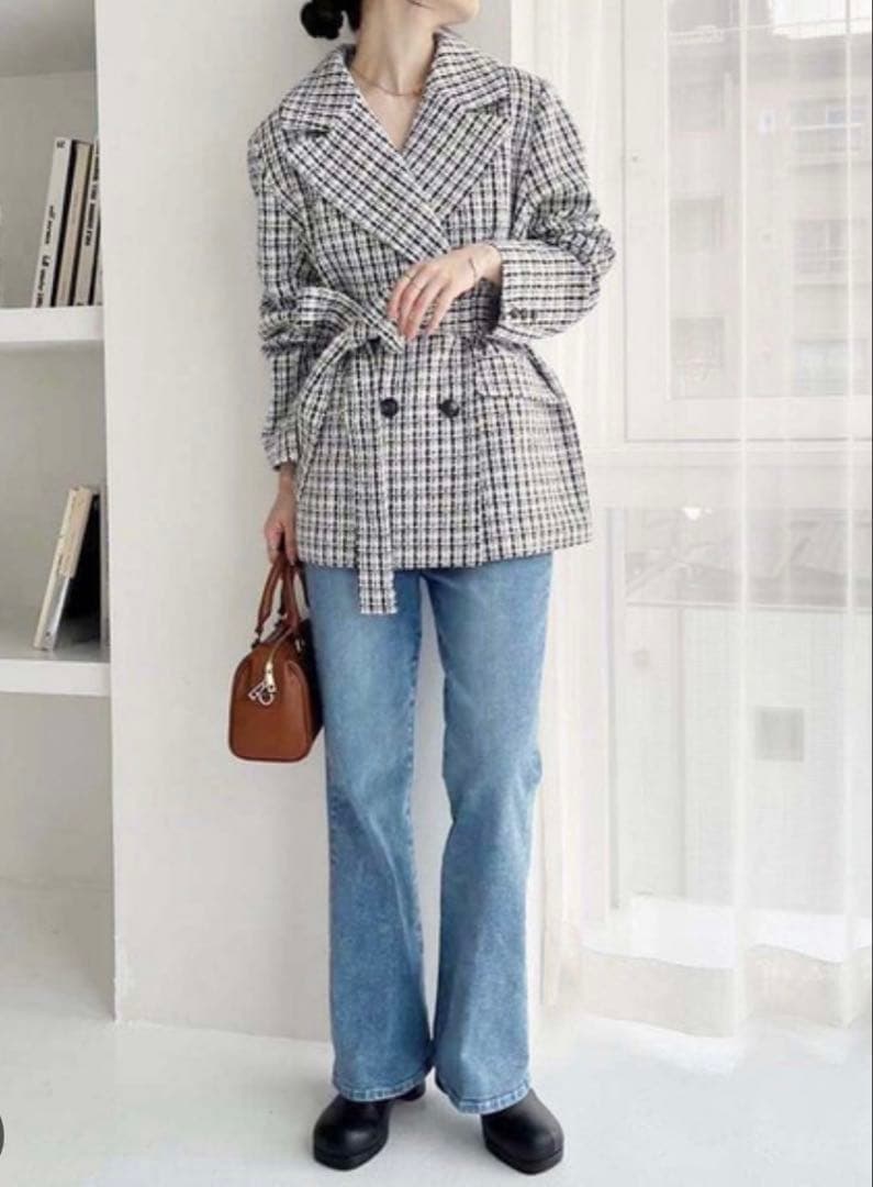 ワンアフターアナザーナイスクラップ ベルト付きツイードテーラードジャケット