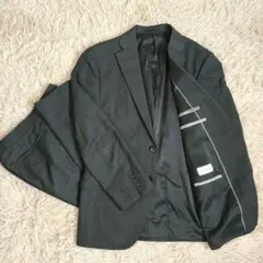 アジャスター付き スリムスーツ メンズ 2つボタン 背抜き仕立て ノータック パンツ 上下洗える スタイリッシュ スリムフィット オールシーズン/秋冬春 スリーシーズン ビジネス ウエスト調整機能