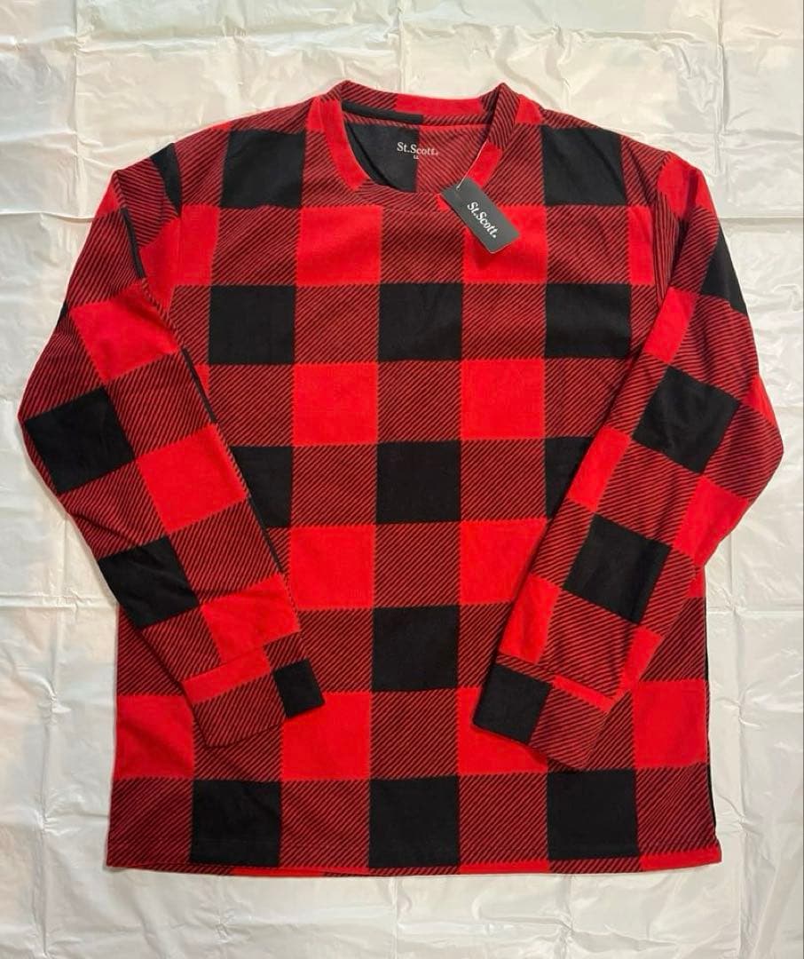 新品 タグ付き St.Scott フリース 長袖 赤 黒 チェック LL