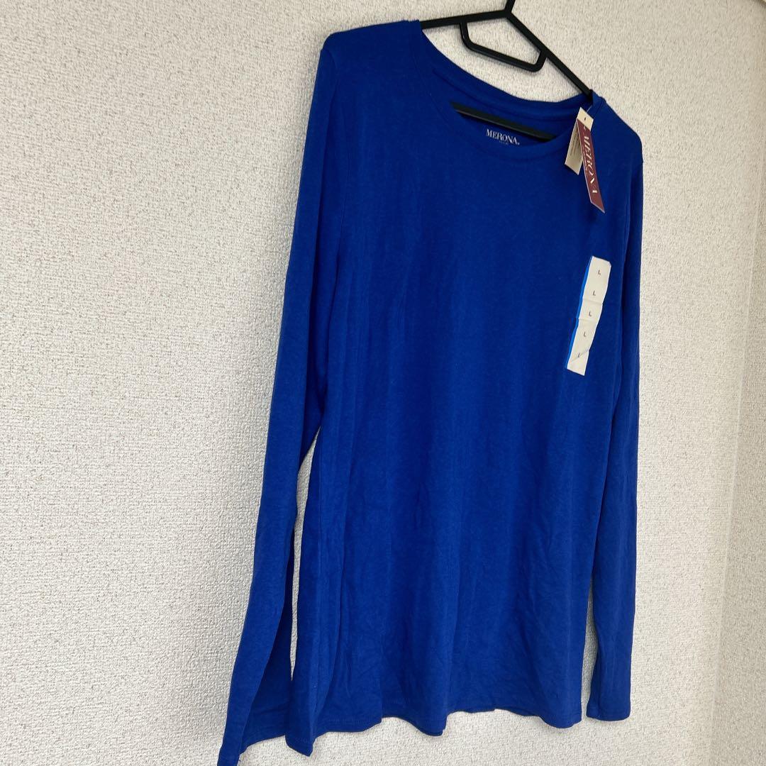 【未使用品】MERONA 長袖Tシャツ【L】 青 シンプル 無地 インナー