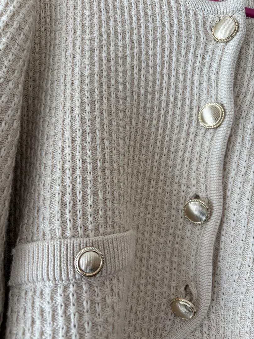 リブ編みのクリーム色クロップドニット、長袖で大きなボタン付き。 - 色: クリーム - スタイル: クロップド - 素材: ニット - ボタン: 大きなボタン - 袖: 長袖 - デザイン: リブ編み - 着用シーン: カジュアル 袖に一部ほつれあり。 一年ほど前に購入しました。 定価4290円。 圧縮して発送する可能性あり。 ご覧いただきありがとうございます。