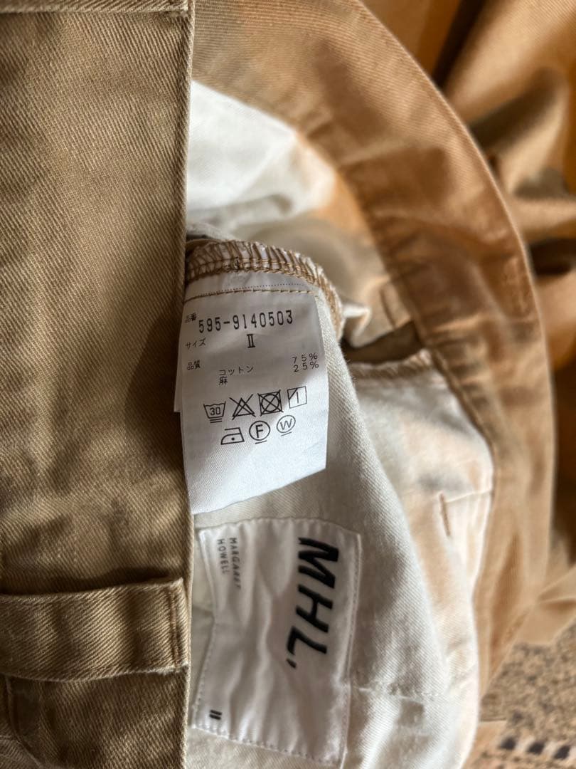 MHL chino pants Size:2 color: beige 股上:39.5cm 股下:72cm 裾幅:29cm ヒップ:105cm