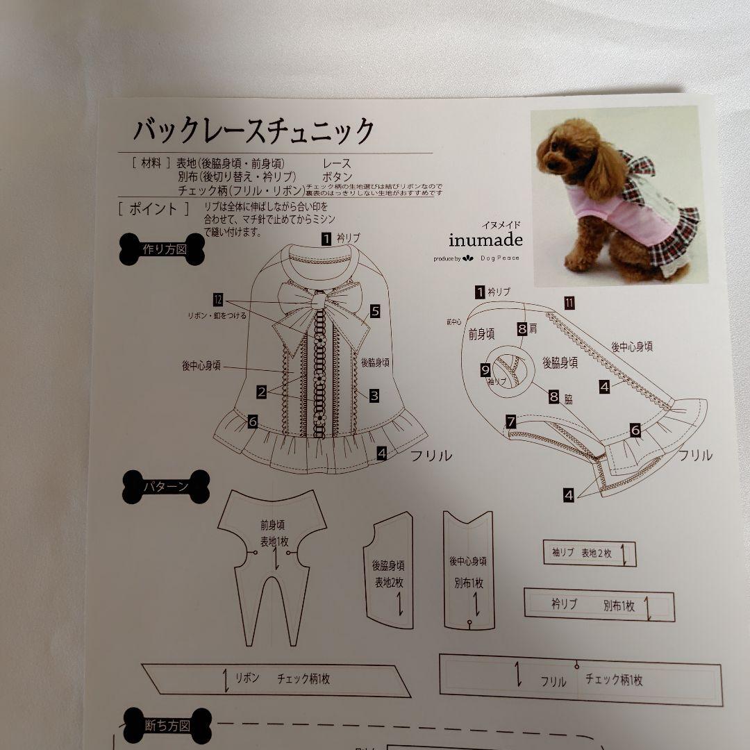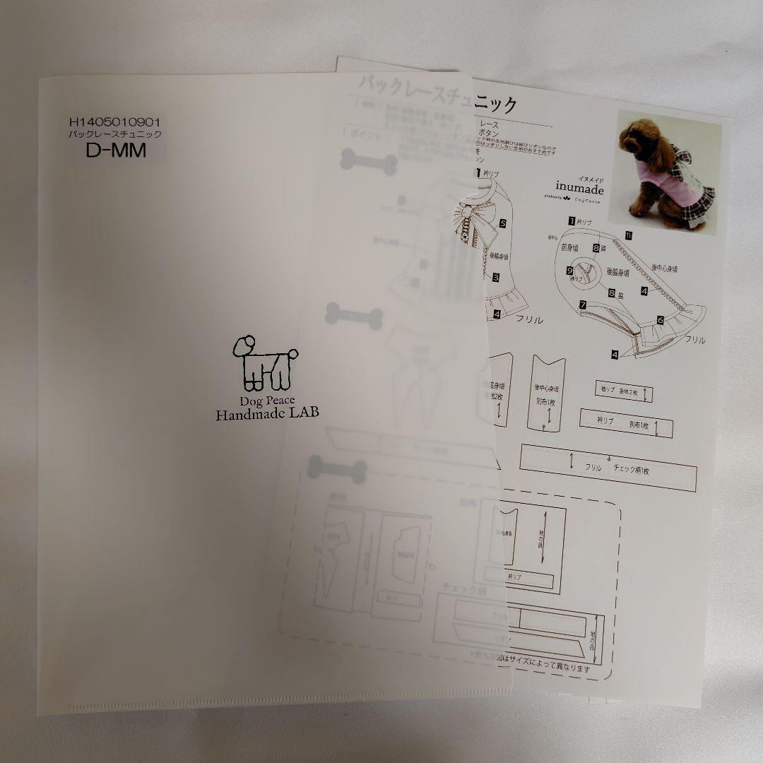 Dog Peacのバックレースチュニックの型紙です。ダックス用のサイズです。 ブランド: Dog Peace - パターン: 犬服用型紙 - size: D-MM 首周り 30cm 胴回り 42.5cm 着丈 29.5cm 愛犬の洋服作りの為に購入しましたが長く使っておらず自宅保管していました。 特に汚れや傷もなく問題なくお使い頂けると思います。 ご覧いただきありがとうございます。