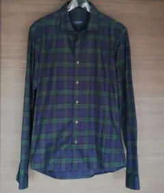 超美品【フィナモレ Finamore】 綿100% ホリゾンタルカラー チェック柄 長袖シャツ (メンズ) sizeS レッド×ブルー 伊製 ◇33MK5758◇ 【中古】