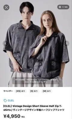 CLELI ビンテージデザイン ハーフジップTシャツ Mサイズ