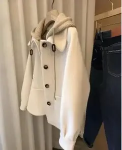 ホワイト ダッフルコート リブフード付き 早い者勝ちです!