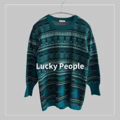 【Lucky People】長袖 ニット プルオーバー グリーン