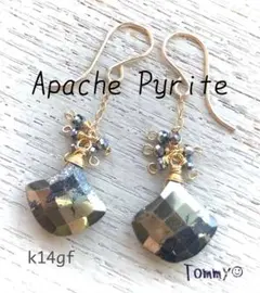 14kgf アパッチパイライト扇カービングとテラヘルツのピアス