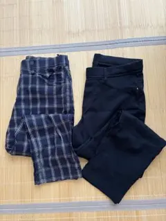 ネイビーとホワイトのチェック柄パンツ 無地 シンプル ブラックパンツ ボトムス