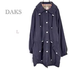 ◇ダックス【L】ジャケットコート ロング丈 裏地チェック柄 防寒着 日本製