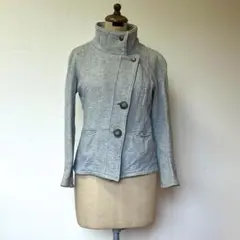 ヘリンボーン柄 ノーカラージャケット シルク混 サイズ9AR(M相当) グレー