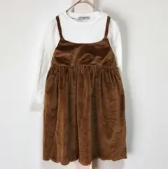 子供服(130)ジャロンハウス ドッキングワンピース 重ね着風 綿 長袖 ベロア